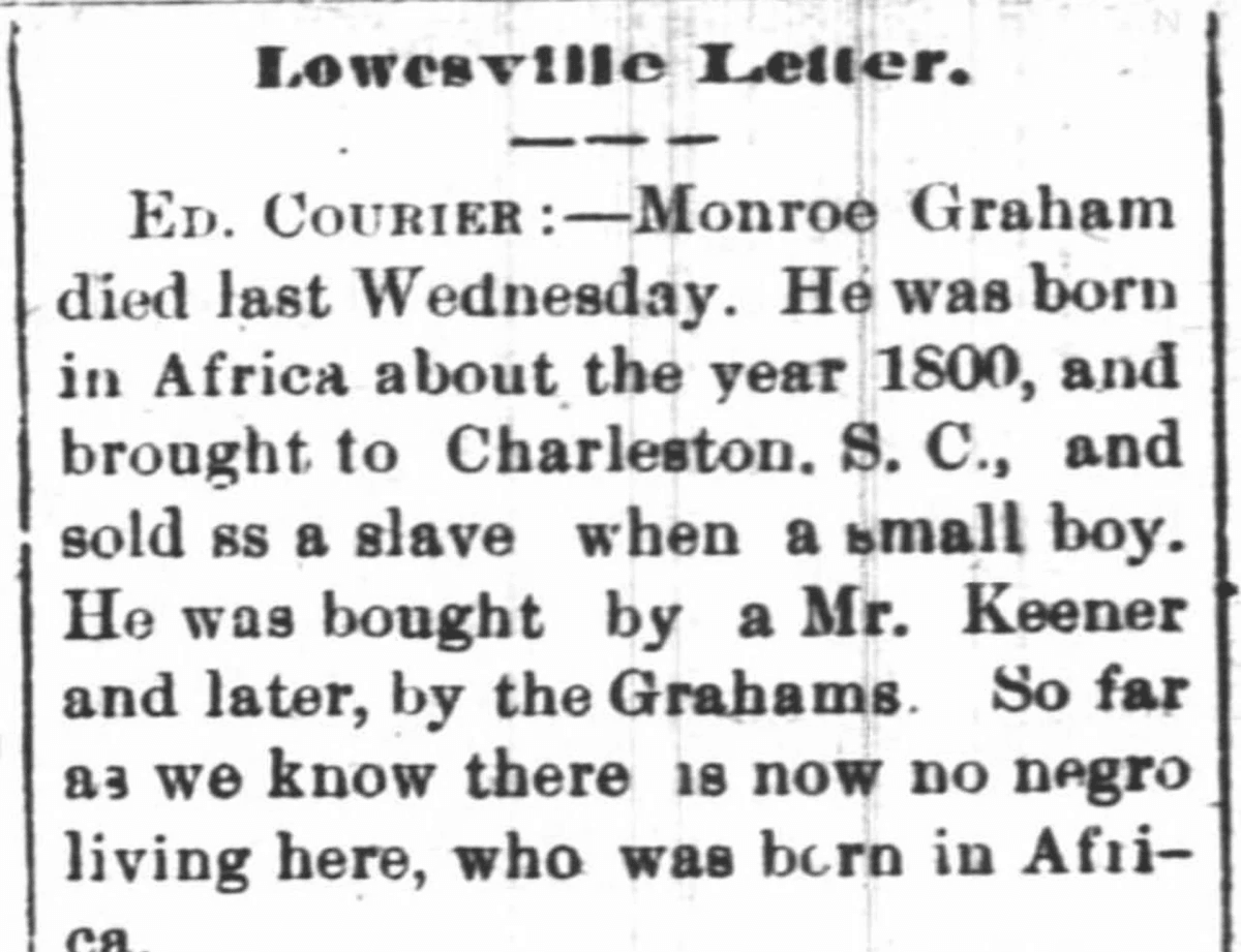 I'm the great-great-great-granddaughter of Monroe Graham, born in Africa around 1800, brought to Charleston, South Carolina, and sold as an enslaved child. His descendants, my grandparents, became sharecroppers in North Carolina. My mother escaped picking cotton—her older siblings did not.